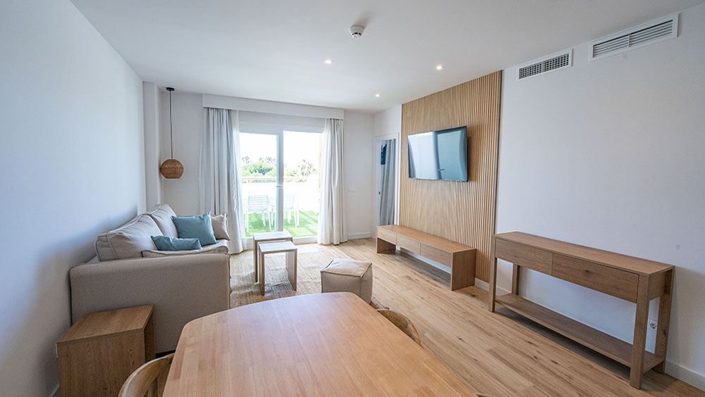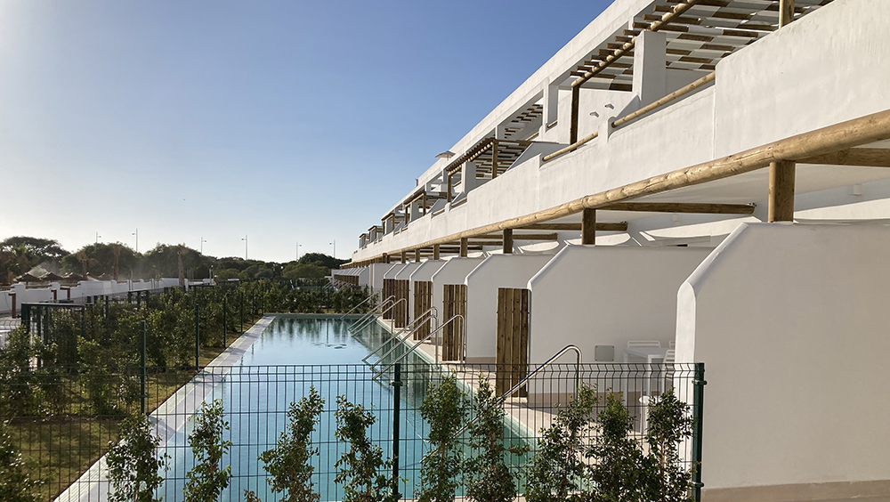 På anläggningen finns det dessutom två pooler, en bar och en chill-out-terrass med havsutsikt. Sammantaget blir detta ett utmärkt val för din longstay. Anläggningen har ett starkt hållbarhetsfokus med bioklimatisk arkitektur, förnybar energi, ansvarsfull vattenförbrukning och satsar även på miljövänliga fritidsaktiviteter. Några av regionens vackraste stränder, inklusive Punta Candor, ligger inom gångavstånd och inbjuder till lugna promenader i solnedgångarna vid havet. Här kan du njuta av havet, böljande sanddyner och gyllene stränder. För oss som gillar golf finns det flera mycket bra banor i närheten och samtliga fyra banor som ligger inom 40 minuters bilresa från boendet ingår i Golfvistelses paket, däribland den populära 27-hålsanläggningen Costa Ballena Club som ligger endast 10 minuter bort med bil.